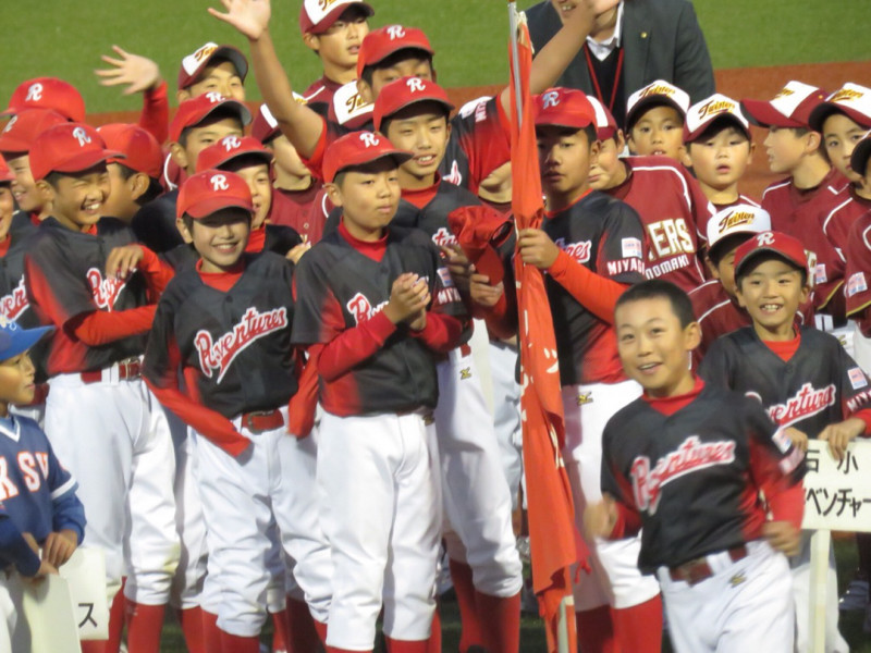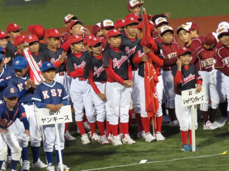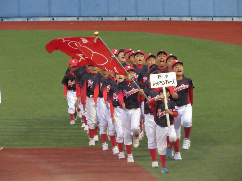 2018-06-15 開会式 少年野球...2018 本日は石日旗争奪少年野球大会開会式石巻市民球場にて地域のスポーツを想う石巻日日新聞社さん主催の素晴らしい大会大会を彩るのは石巻赤十字看護専門学校カラーガード部の皆さんチアダンスチームプレシャスの皆さん石巻地域広域消防音楽隊の皆さんさて肝心の行進はぶっつけ本番...緊張感のない紅黒軍団ちょっと緊張のルーキーズそしてキッズいざ出陣ですなかなか練習する機会はなかったけどチーム全員で盛り立てましたね結果行進賞をGETする事が出来ましたおめでとう6年生を中心に頑張った証です肌寒い中保護者の皆さんもシスターズも開会式を盛り上げました今年で60回を数える伝統の石日旗争奪少年野球大会はじまります
